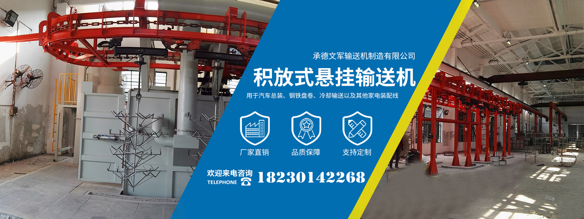 承德文軍輸送機制造有限公司位于承德縣孟家院鄉(xiāng)工業(yè)園,自2009年起公司專注生產(chǎn)制造各類工廠物流自動化設(shè)備,替代了進口產(chǎn)品,并成功進入了國外市場,再此基礎(chǔ)上公司的AS/RS自動化立體倉庫成功用于煙草、發(fā)動機、鑄造型芯、以及其他物流配送中心,公司的積放式懸掛輸送機廣泛用于汽車總裝、鋼鐵盤卷、冷卻輸送以及其他家電裝配線等。